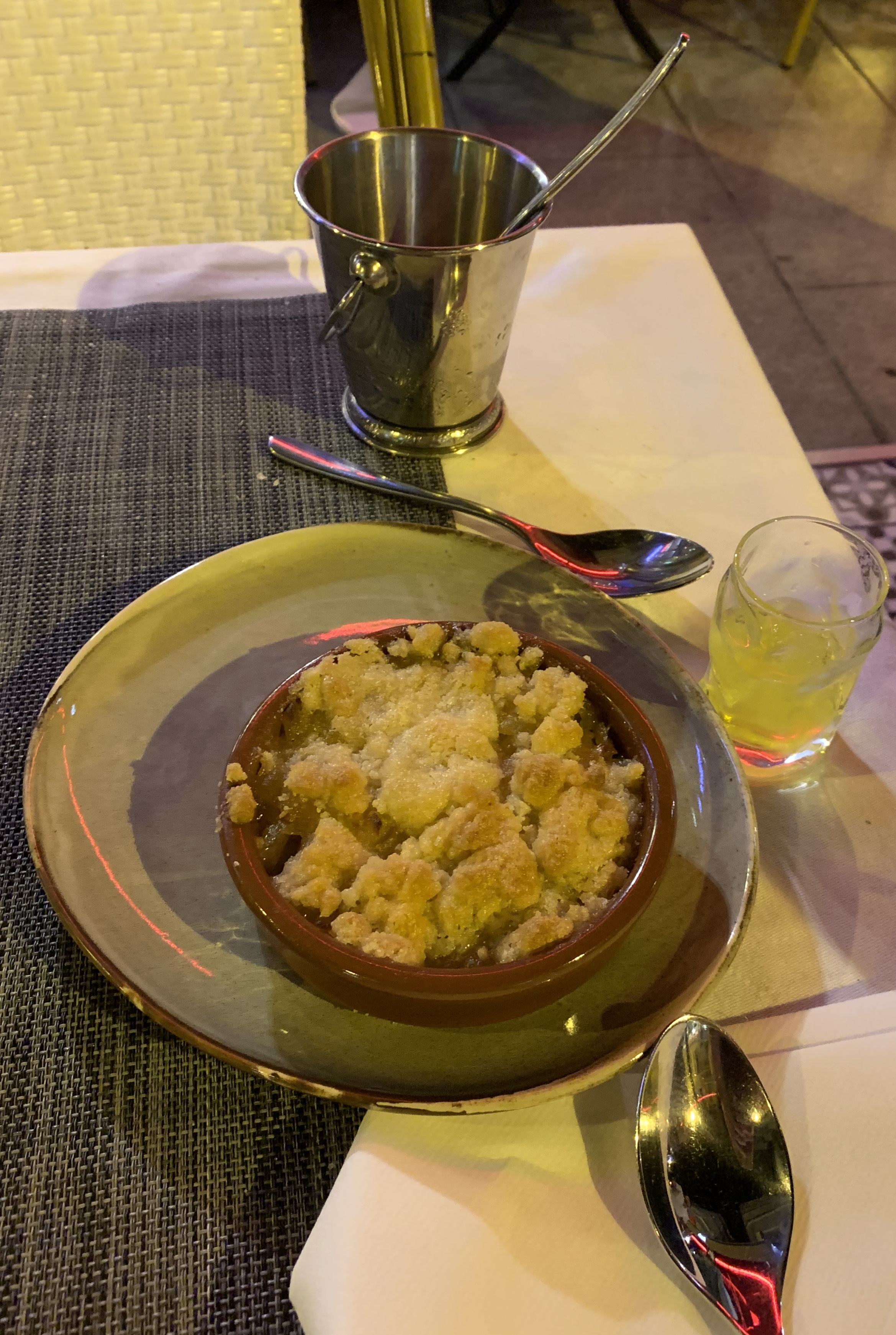 Repéré la veille en balade, nous avons réservé ce soir une table pour deux personnes en extérieur. C’est pour nous une excellente découverte, nous y avons commandé : - Aubergines thrina en entrée - 2 entrecôtes en plats (très tendres) - Crumble aux pommes 🍎 en dessert Tout était bon, l’ambiance agréable, on prend son temps et l’équipe soucieuse de la satisfaction cliente A refaire 😋
