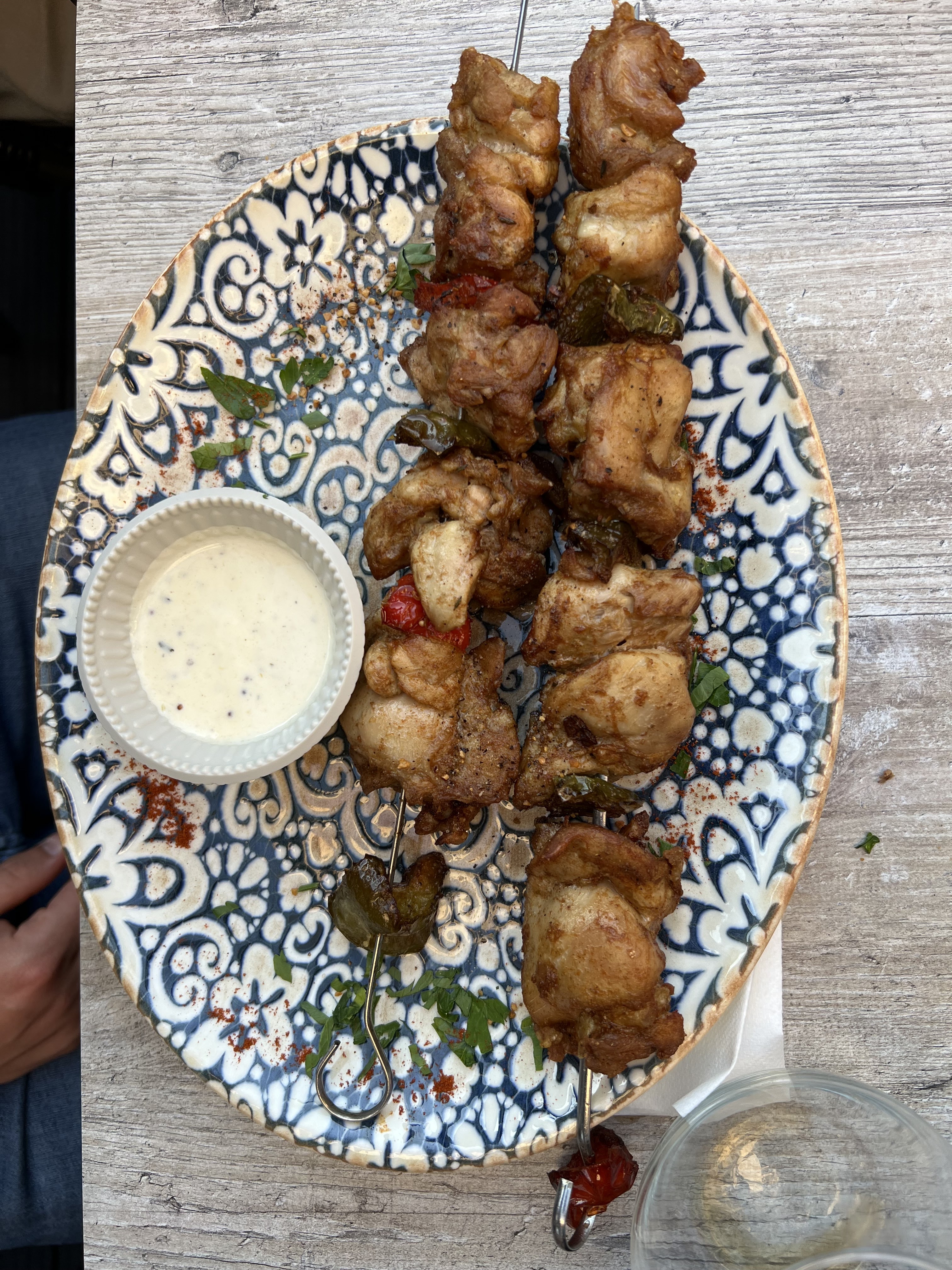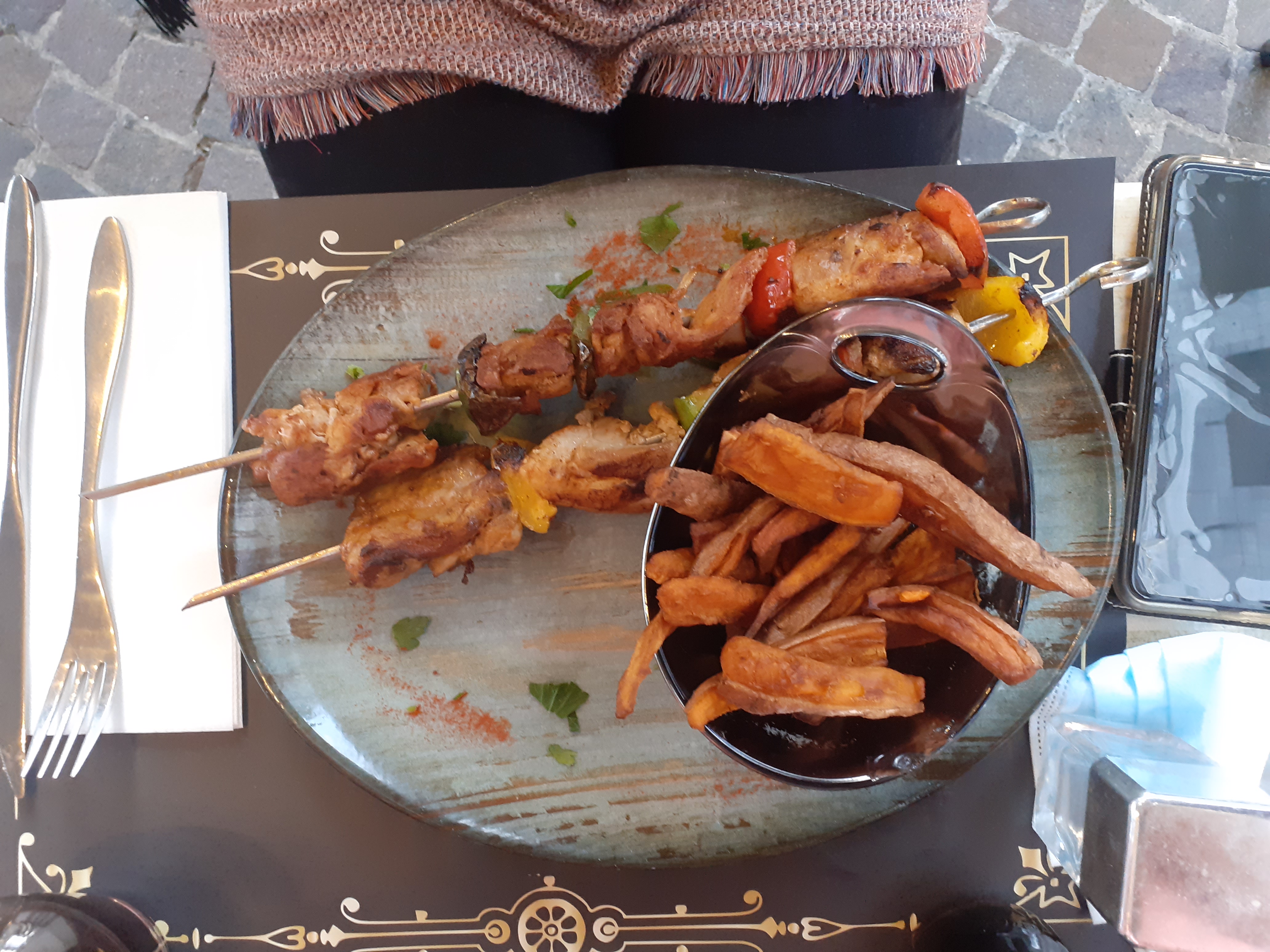 Super terrasse Très bonne brochettes Excellente salade. Endroit très calme a l'abri des routes et voitures. Un excellent moment à partager en couple, famille ou entre amis