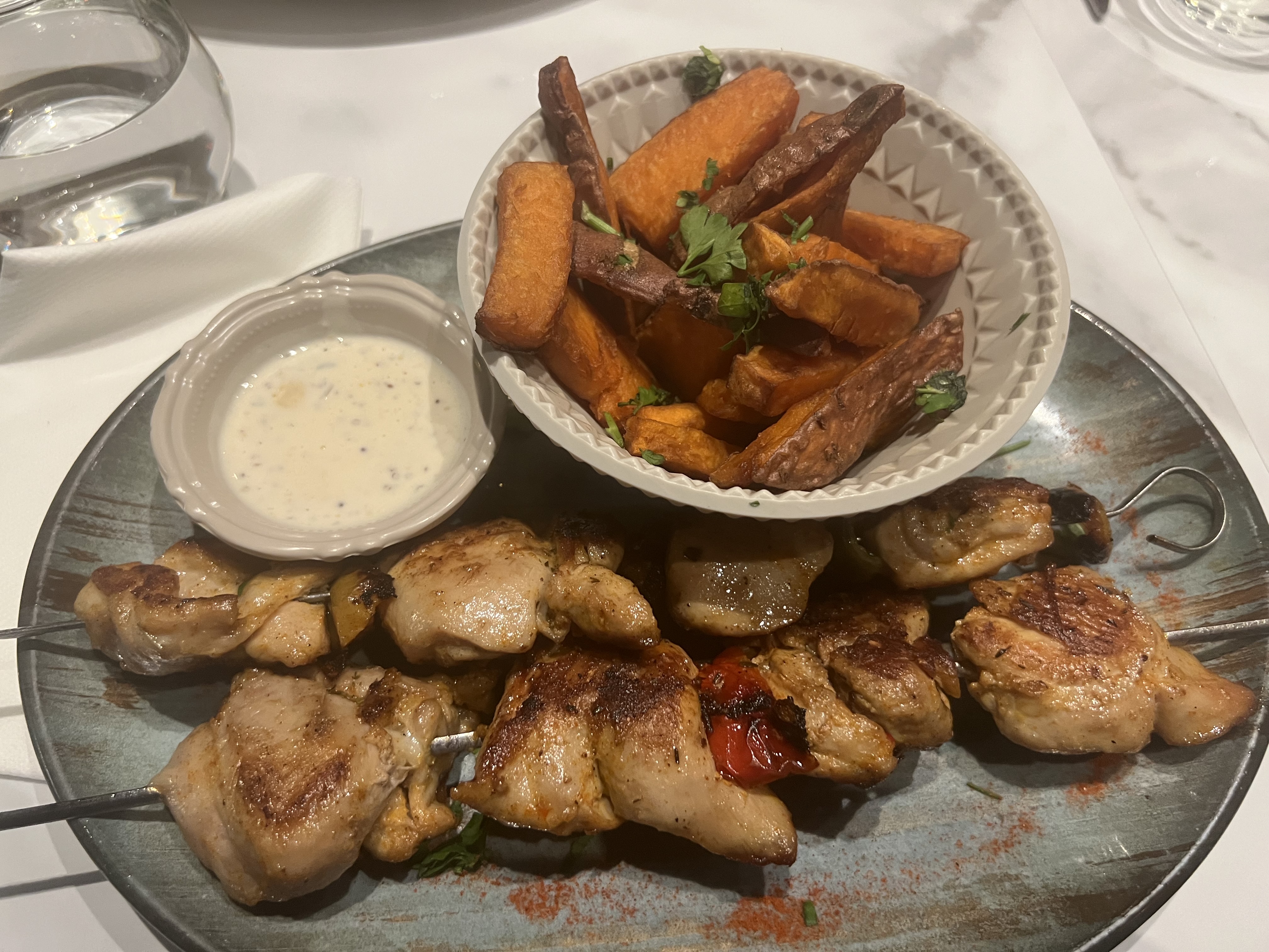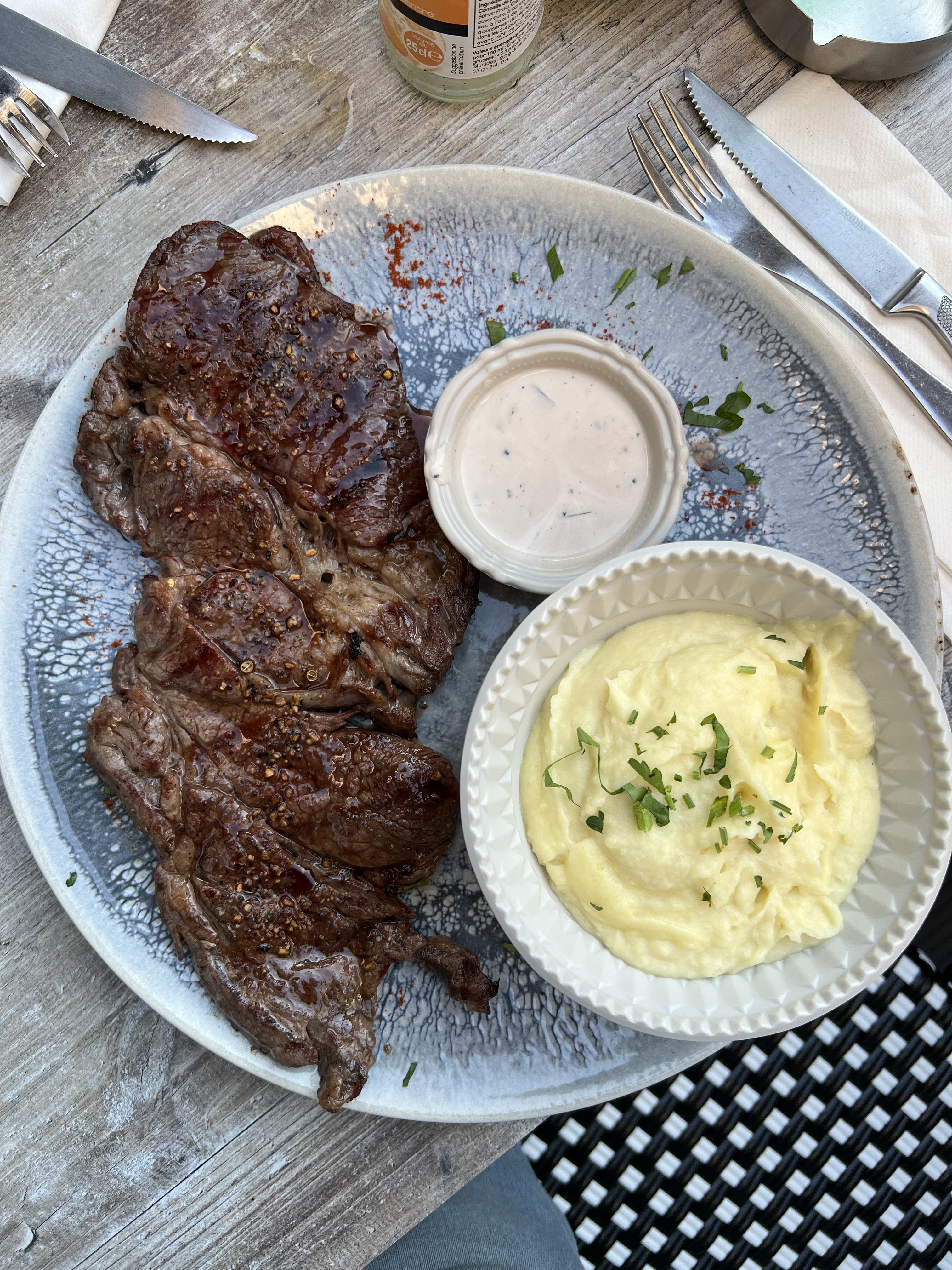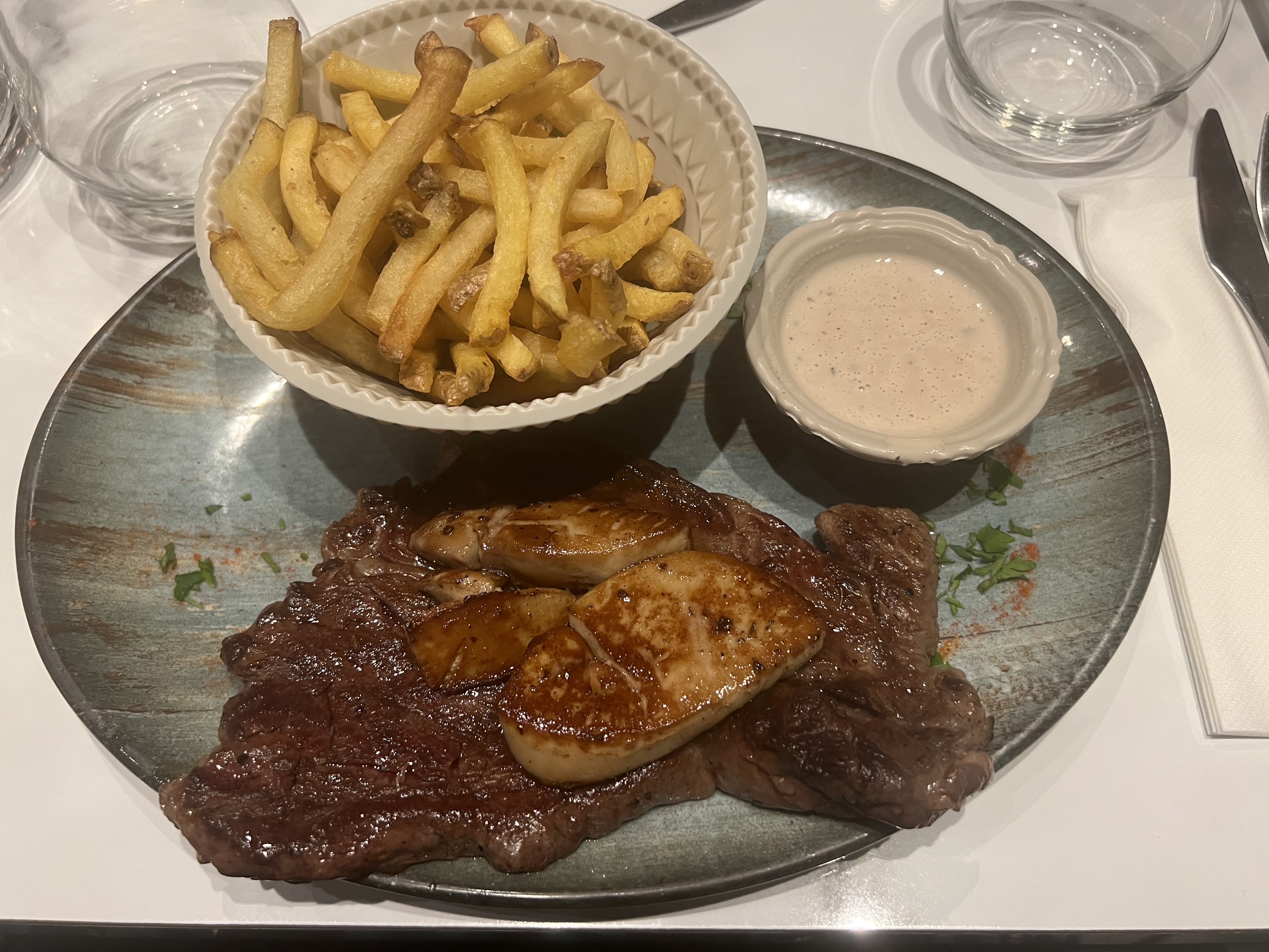 Noix d’entrecôte excellente , accompagnement très bon, sabayon sublime et thé gourmand très mignon , service rapide et professionnel. Ils n’ont pas hésité à nous satisfaire après avoir fait une réclamation . Bravo à vous et bonne continuation. . Nous reviendrons .