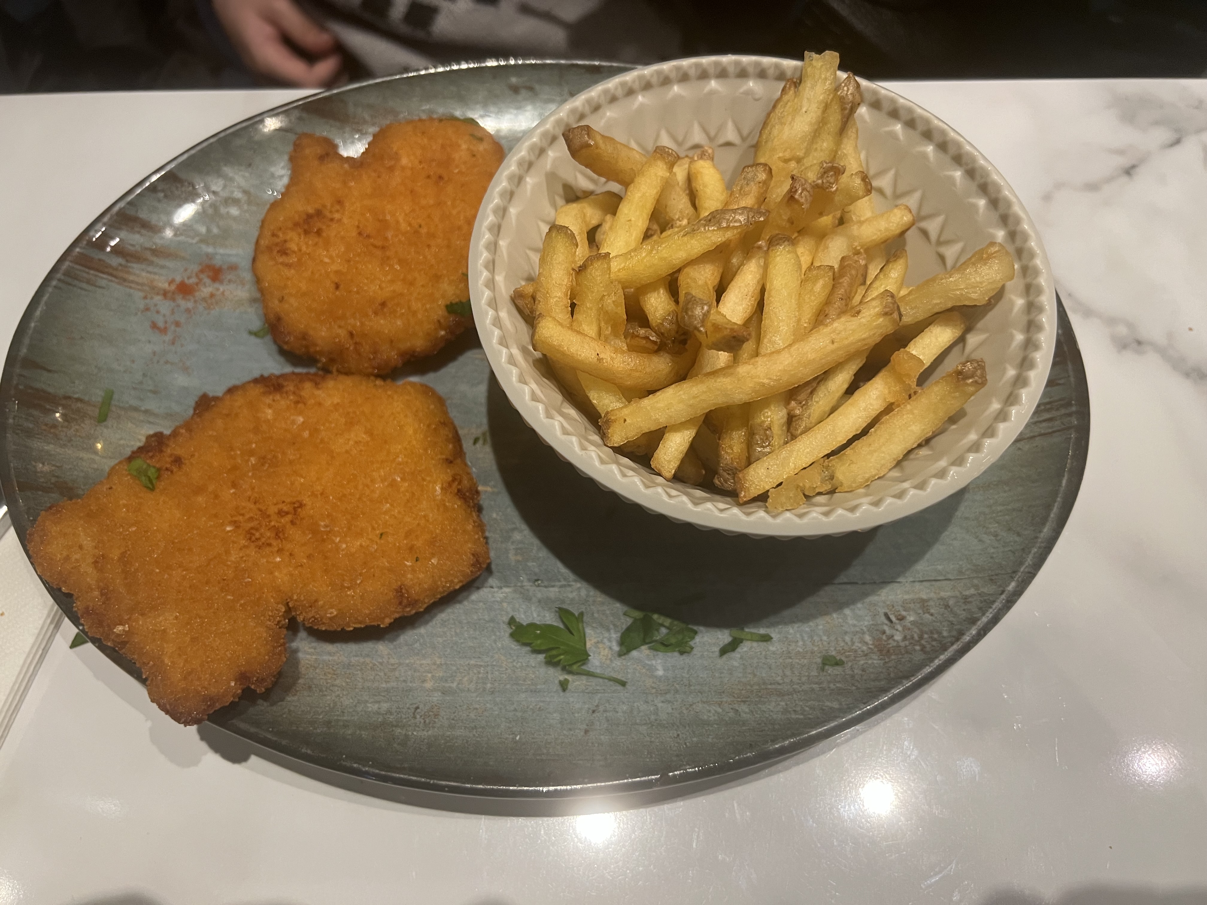 On avait bien aimé notre première fois avec un bel assortiment d’entrées : merguez, ailes de poulets… Mais cette fois avec un enfant, on est forcément déçus quand le schnitzel du menu enfant est celui qu’on achète congelé à la maison… Sur les autres plats, ce n’était pas aussi bien que la première fois : tacos un peu gras avec une viande peu tendre, pas fan de la recette des pâtes à la sauce, mais ce n’est que mon avis (j’aime l’originale).