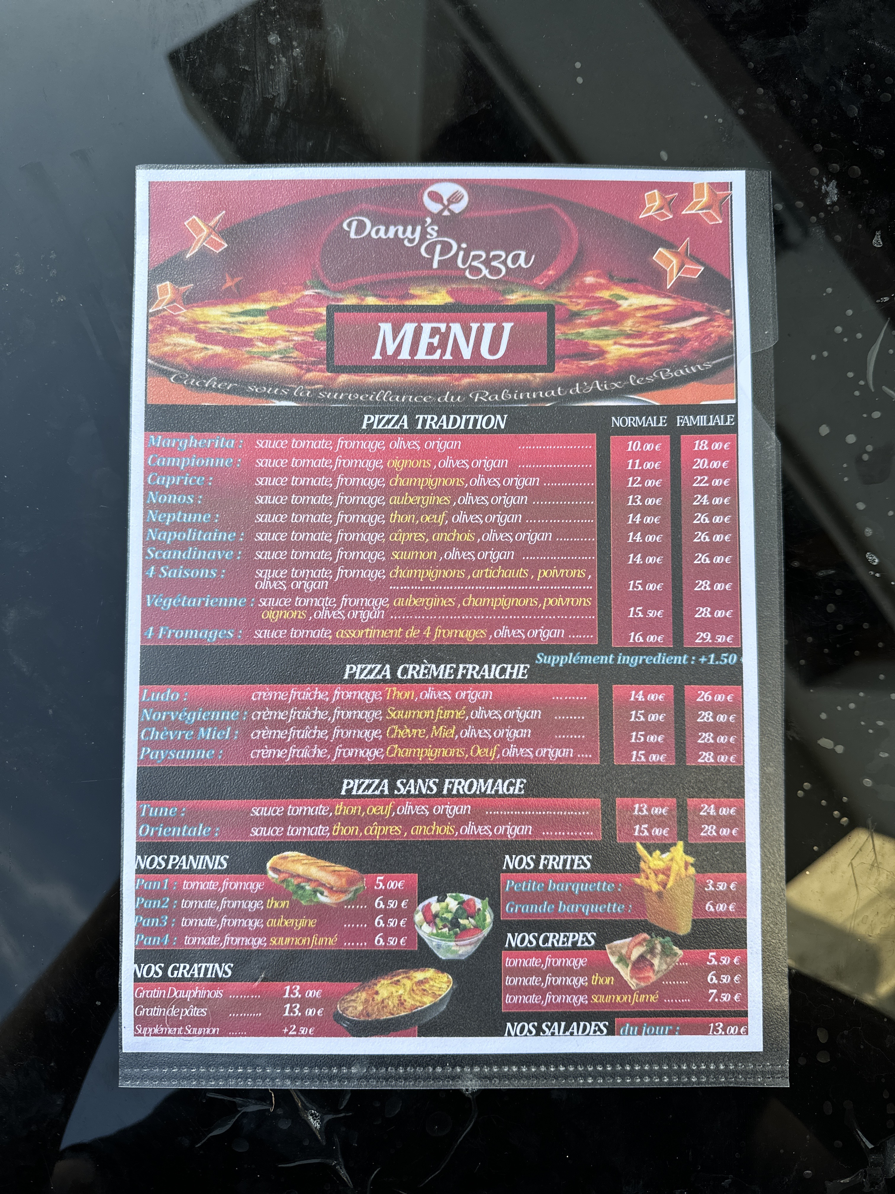 Disponible, convivial et pour les connaisseurs de bonnes pizza , cette pâte fine à base de crème fraîche ou de sauce tomate 🍅 nous donne l envie d y retourner.....il y a même une solution pour le parking.merci !
