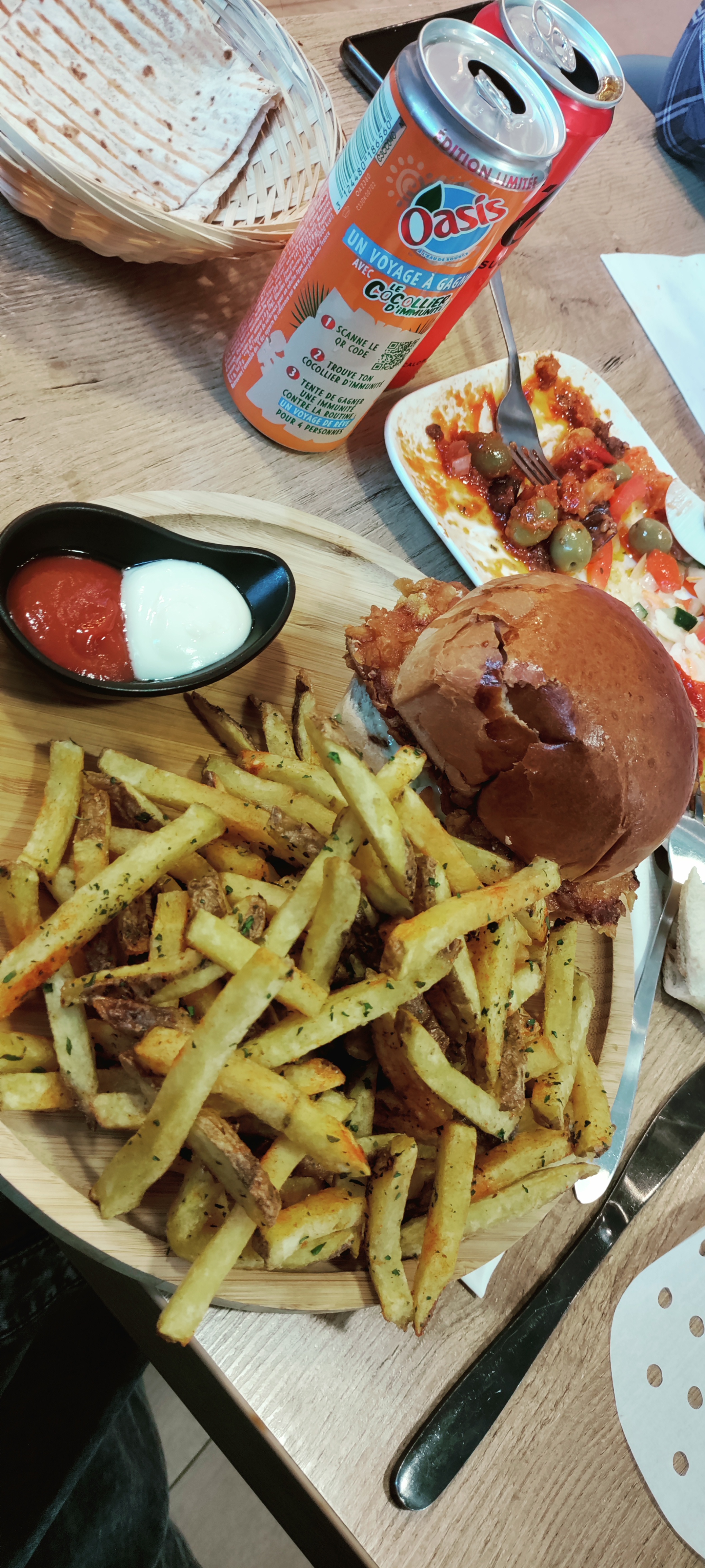 Personnel très agréable Frites et pains faits maison un vrai plus et tellement rare.. Simple mais bon Une très belle surprise !!!