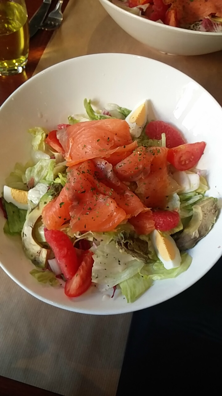Pour 12,50€, vous avez une grande Salade fraîcheur qui comporte une demi-rondelle d'ananas, un demi-oeuf, +60% de simple salade & 4 tranches très fines de saumon....Pour 12,50€ j'aurais bien voulu savoir ou était passé le reste de l'oeuf, de l'ananas et du poisson. Du vol.