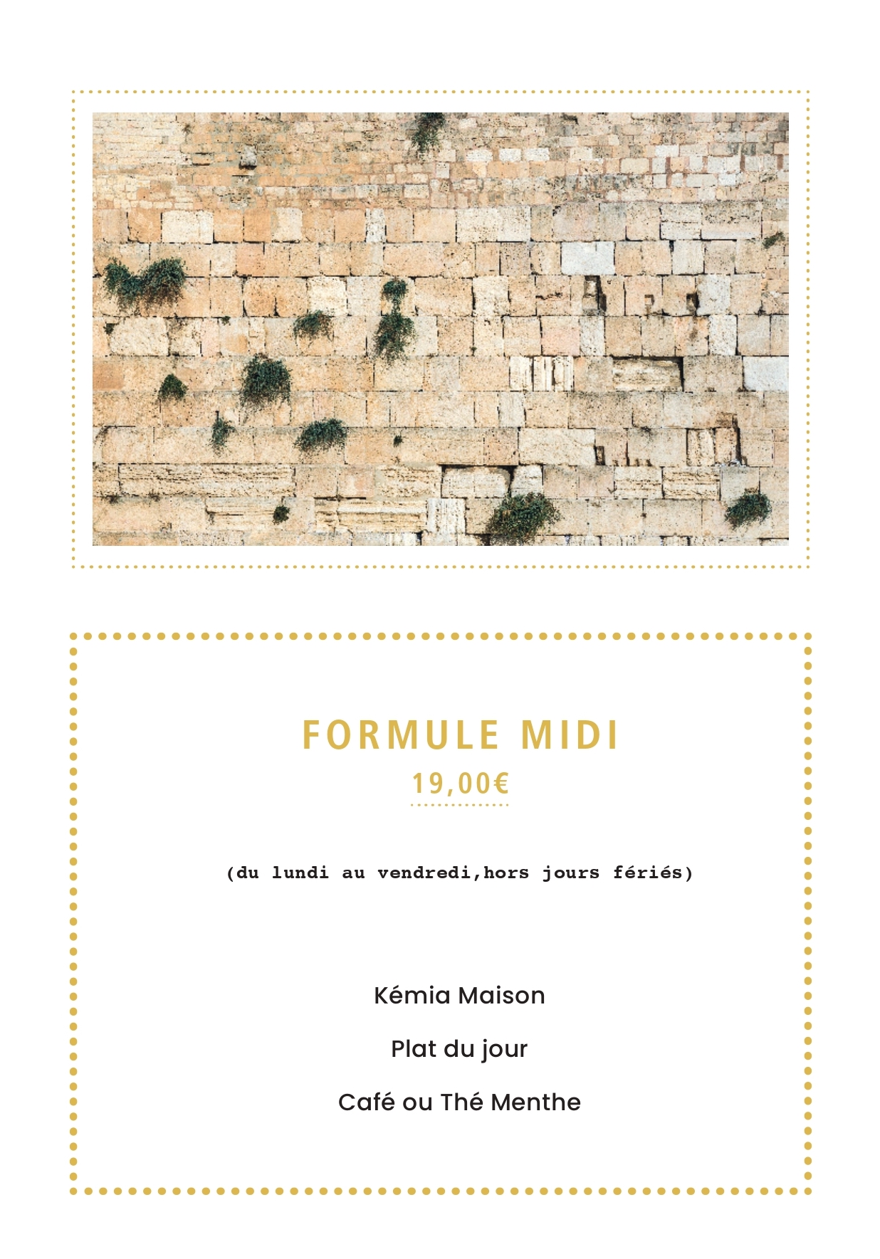 Excellent accueil et service attentionné. Cuisine méditerranéenne et moyen-orientale goûteuse et finement épicée. Compter autour de 25€ en pour le plat principal mais il existe une formule à 19€ le midi du lundi au jeudi avec entrée+plat+thé.