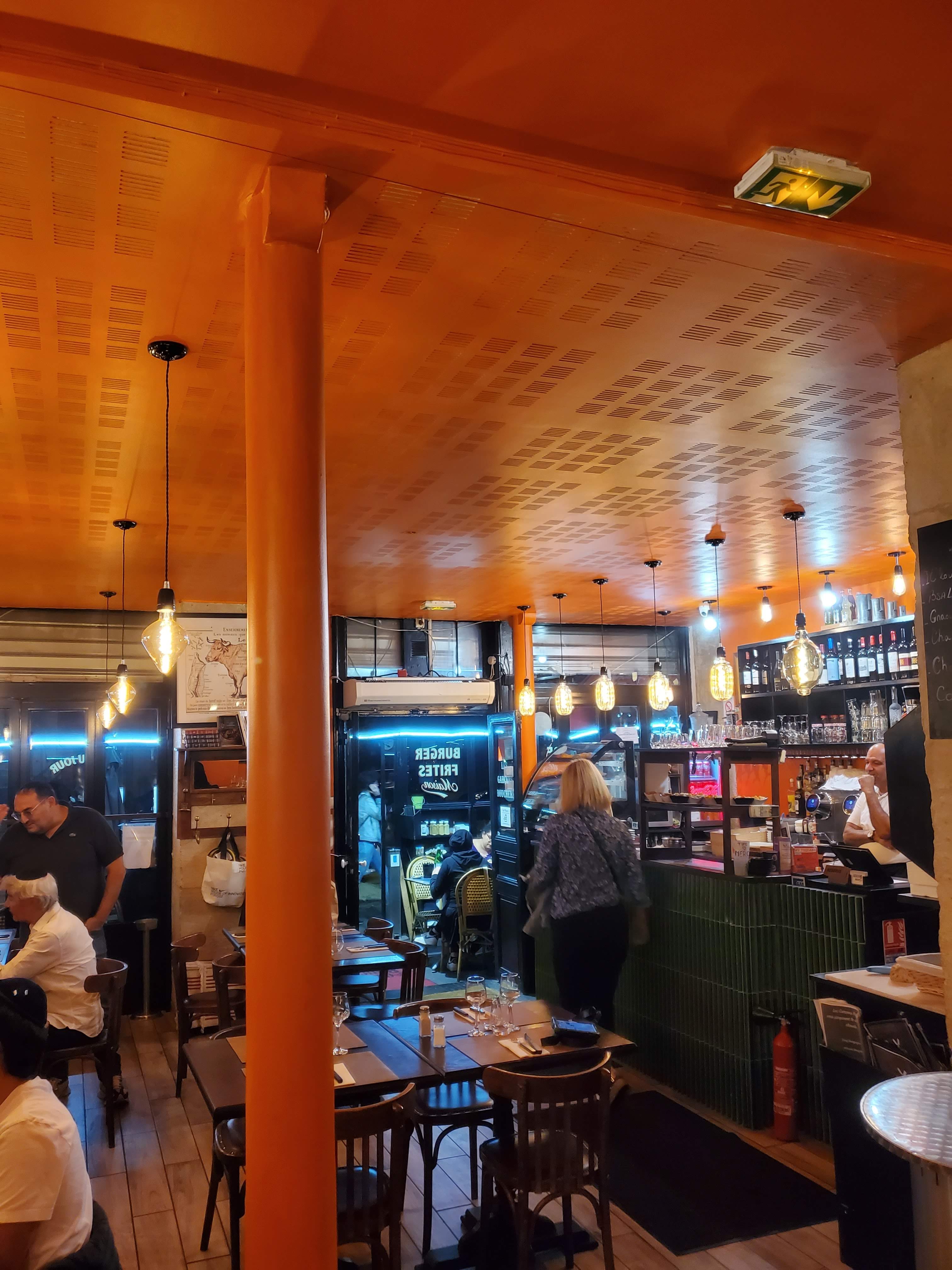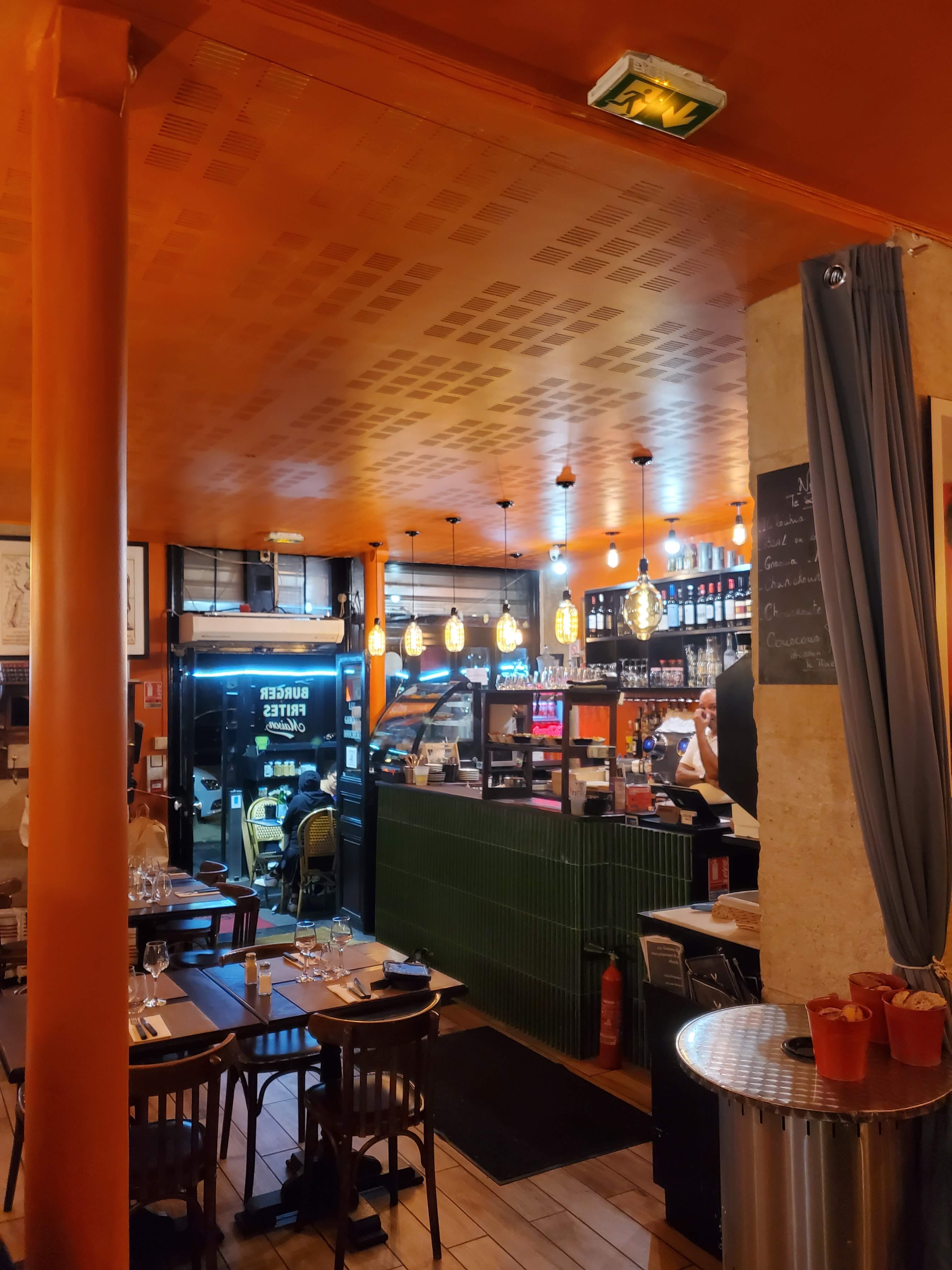 Resto style joli bistrot, nourriture bonne, déco sympa, emplacement pratique