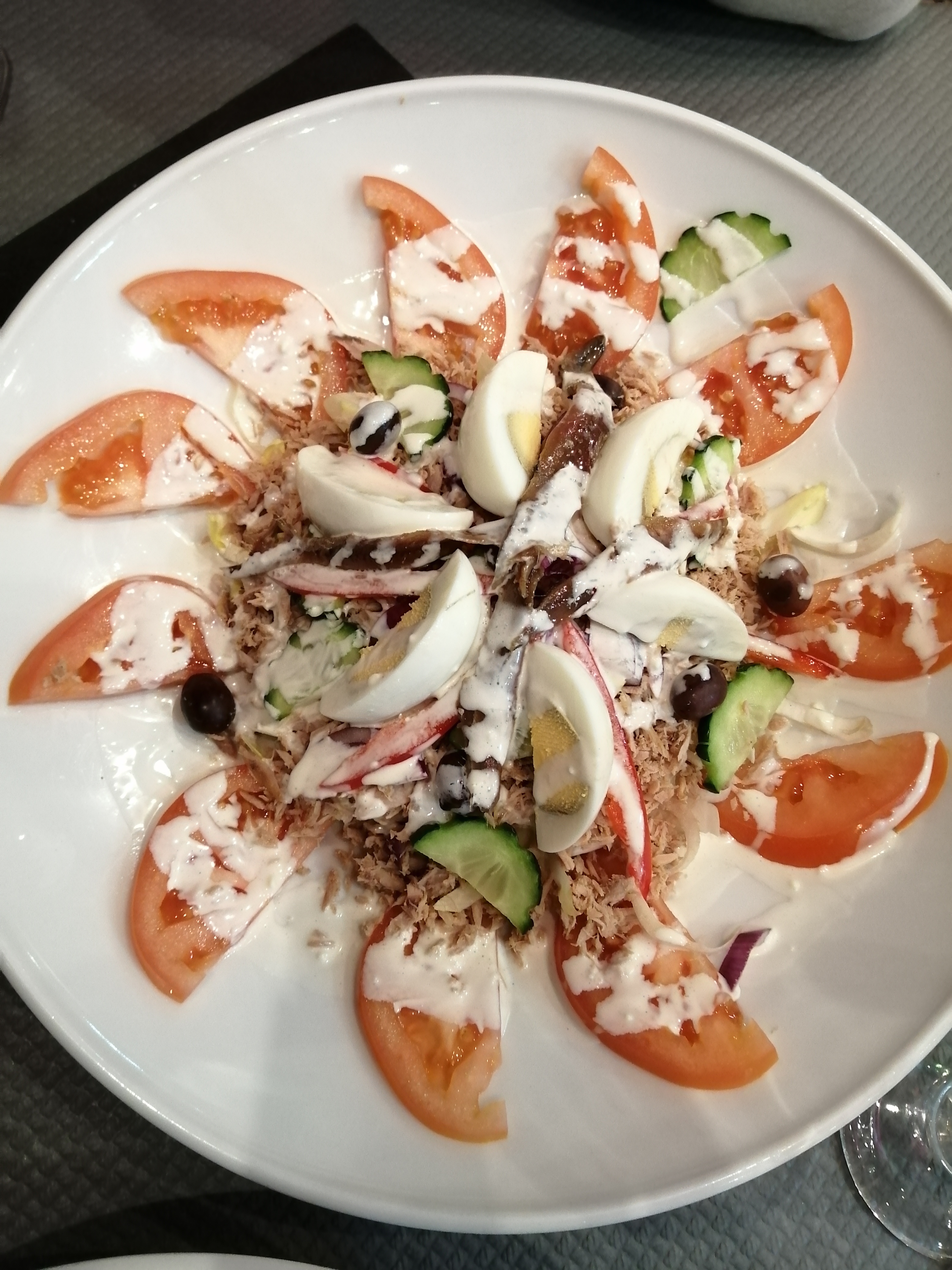 salade de.....??? l'on se demande... croutons black charbonisés , rondelles de tomates transparents, endives ....? les restes de restes des clients on dirait.... et la tarte au citron...???😱😱 qui vous platre le palais et la langue... beeerk !! même le café est inbuvable ! plus jamais ce resto qui a forte baissé point vue qualité !!