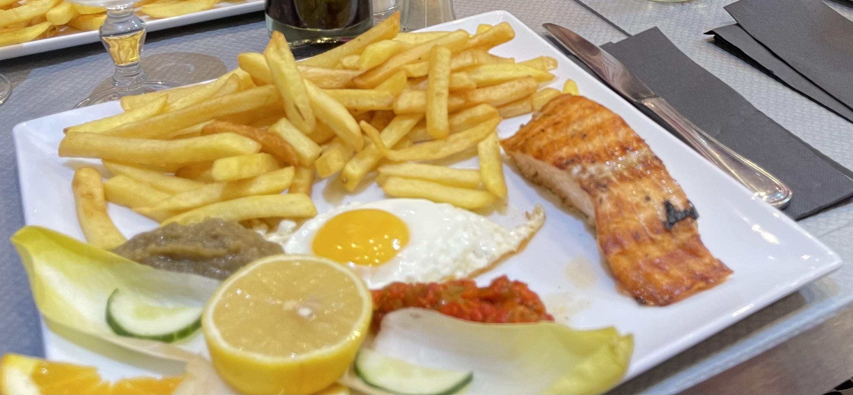 En couple. Restaurant convivial avec une très bonne cuisine et une pâtisserie à la hauteur ! Le père et le fils gère ce restaurant depuis plus de 35 ans ! Le père en cuisine et le fils en salle Très bon rapport qualité / prix Les produits sont frais : - poisson avec frites (dommage qu’elles ne soient pas maison mais ils le disent clairement). Plats copieux et frais - dessert : tarte au citron meringuée d’un autre monde et très bonne crème caramel.