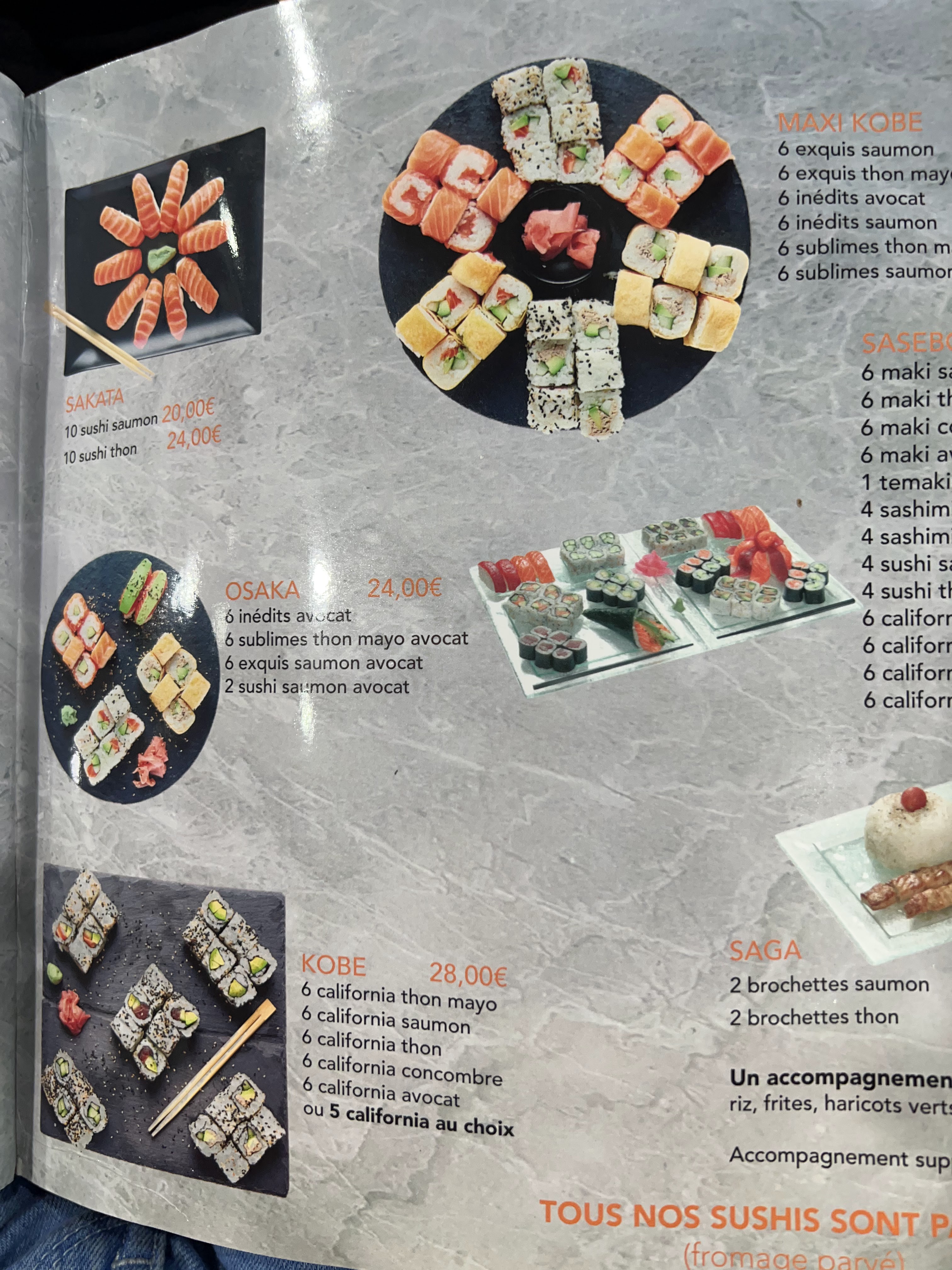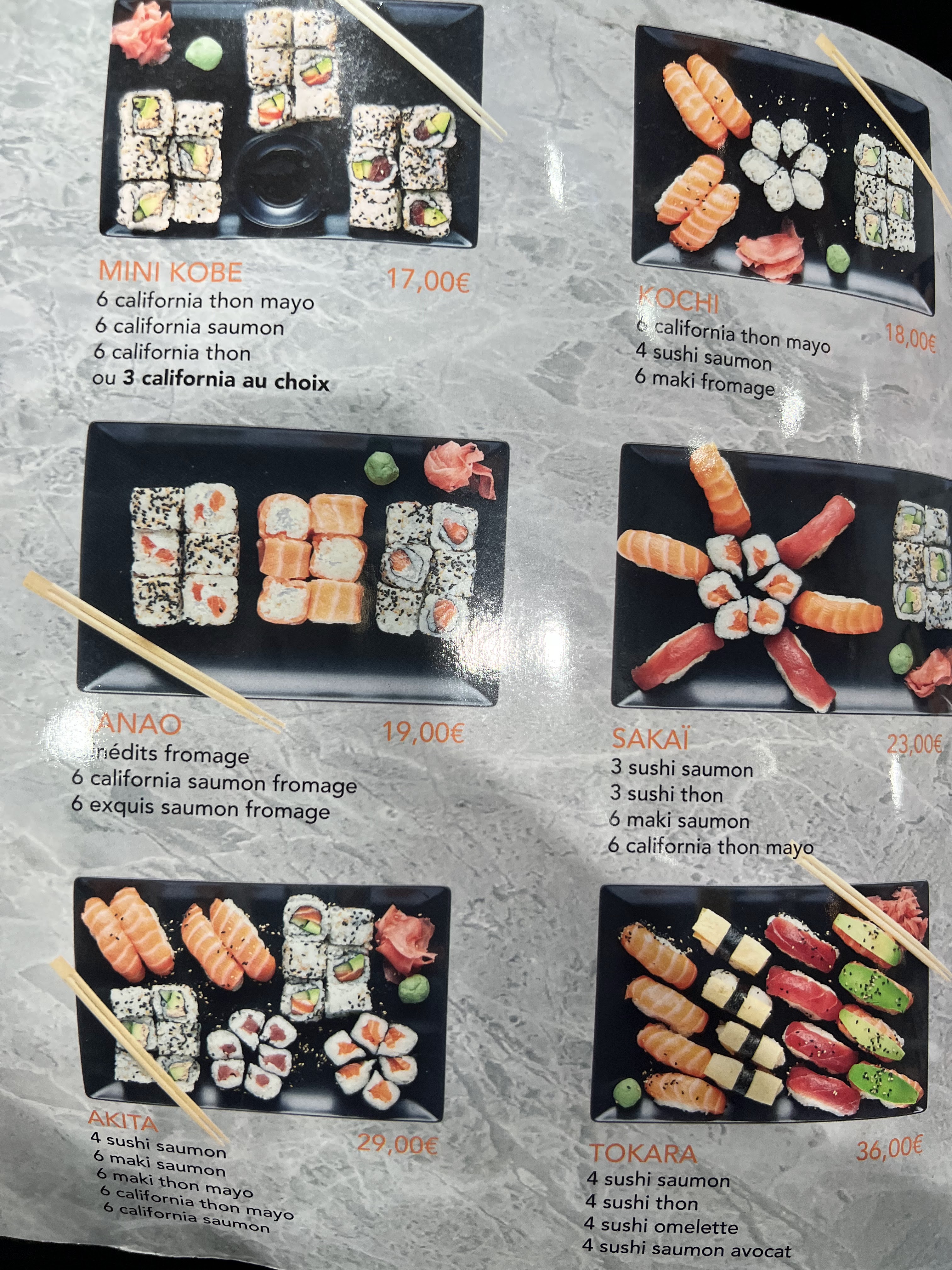 Bon, par où commencer! 1h d’attente du 19iem à Pantin Il me fout une salade de concombre dans mes sushi avec moins de 10 grammes de thon pour 12 californiens à 17€ (Je l’écris en toute lettre pour que vous vous rendiez compte DIX-SEPT EUROS). Vous êtes exactement ce qui motive à ne plus manger cacher. Réponse du gérant : Pas de geste commercial et impossible à changer car nous avons retiré le concombre (Vous auriez pu donc avoir nos sushi récupérés dans votre commande attention hihi) Pour fini, c’est même pas bon donc bon, ce qui est bien dans les erreurs c’est qu’on évite que ça se reproduise à deux reprises. Tibs c’était la première et dernière fois ! Voleurs !