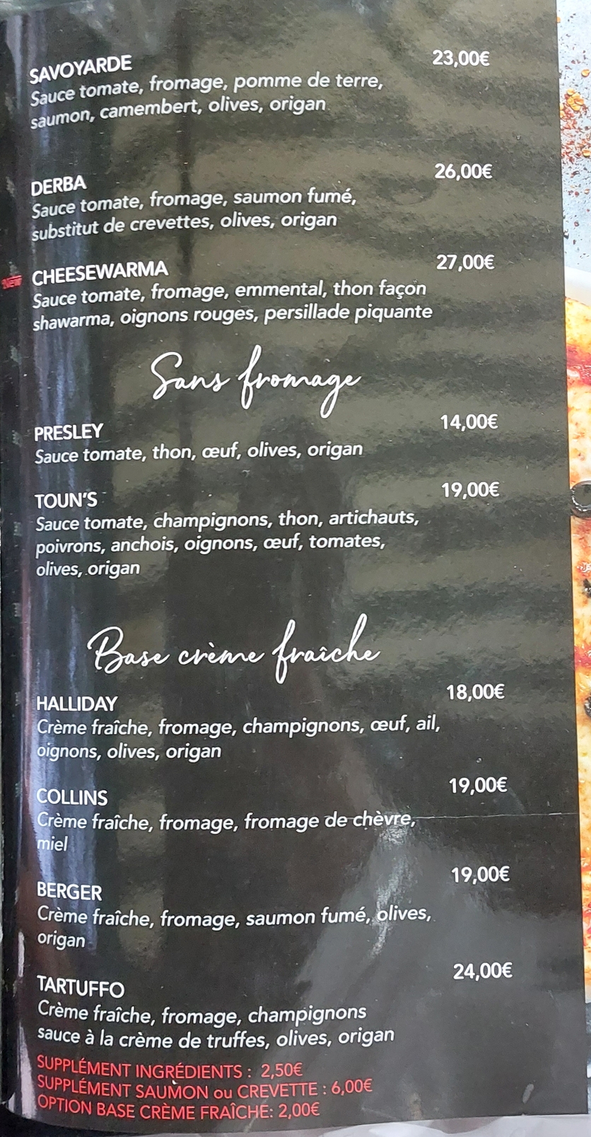 J’ai commandé une pizza, base crème fraîche crevette, ils m’ont fais payés 6€ le supplément crevettes (2 crevettes coupées) et 3€ de supplément pour la crème fraîche La pizza m’est revenu à 21€ C’est du jamais vu …
