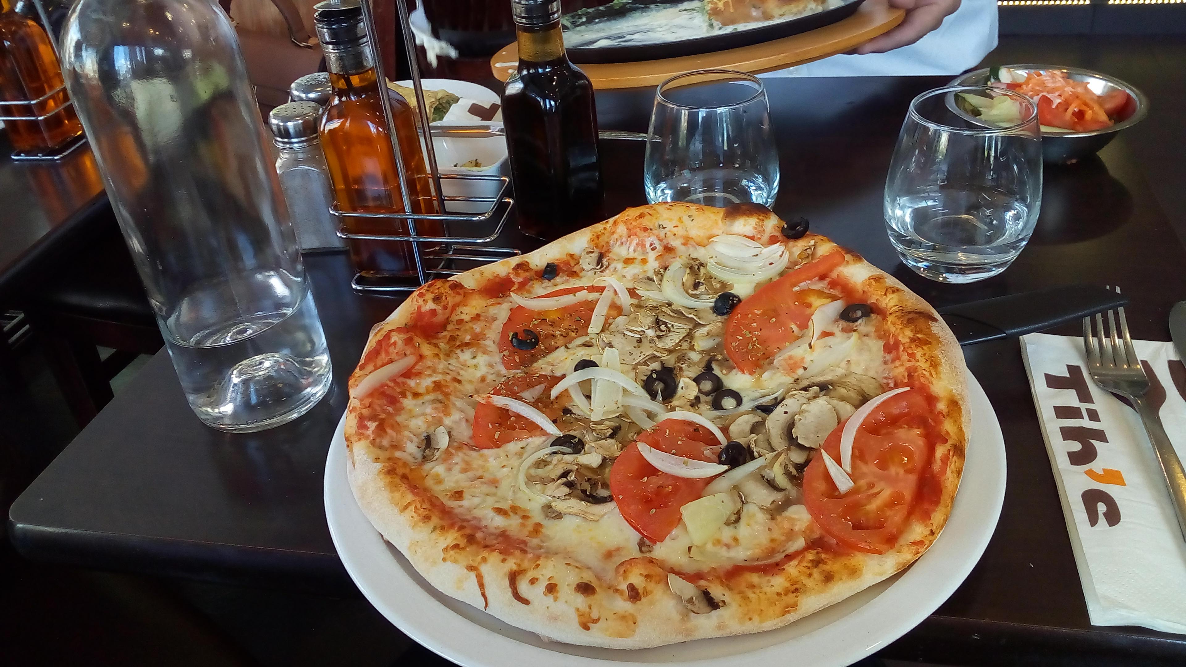 Restaurant agréable et assez grand Cuisine plutôt végétarienne avec quelques pizzas au thon Service plus ou moins rapide Aucune carte n'est indiquée à l'entrée du restaurant
